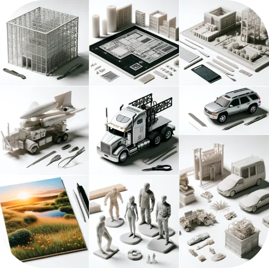 En esta página, ofrecemos soluciones para crear maquetas de estructuras arquitectónicas, prototipos de ingeniería, vehículos, vegetación, maquetas ferroviarias, maquetas para educación, piezas anatómicas para medicina, biología, y mucho más.